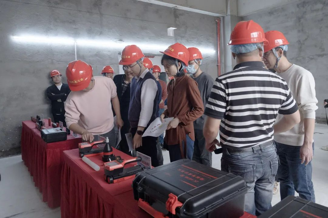 在項目現(xiàn)場,評價組一行首先實地了解項目中無人駕駛施工電梯、紅外熱成像無人機(jī)和實測實量機(jī)器人等智能建筑設(shè)備的應(yīng)用情況。隨后一行人聽取泉州市海絲金融中心、晉江市科創(chuàng)實驗小學(xué)羅山校區(qū)、漳州2022P15地塊(西湖泊月小區(qū))1#~27#樓及地下室和泉州白瀨水利樞紐工程參內(nèi)安置區(qū)A-02地塊等4個項目質(zhì)量管理、安全管理、工程信息、機(jī)械設(shè)備等方面智慧工地建設(shè)實施情況匯報,現(xiàn)場詢問、記錄各模塊具體應(yīng)用實施中的亮點和難點,并隨機(jī)核驗各項目平臺數(shù)據(jù)。